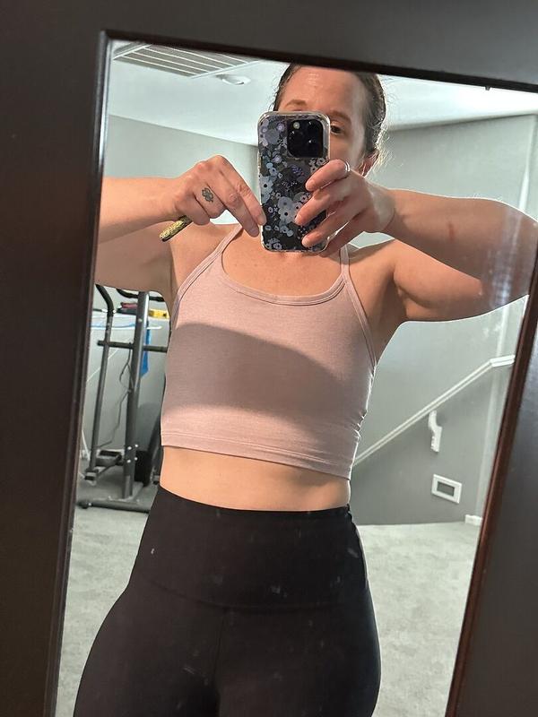 "This tank is buttery soft and surprisingly supportive. The built-in shelf bra keeps everything in place during yoga or Pilates, and the cropped cut pairs perfectly with high-waisted leggings. It’s the kind of top you’ll forget you’re wearing—until someone asks where you got it."