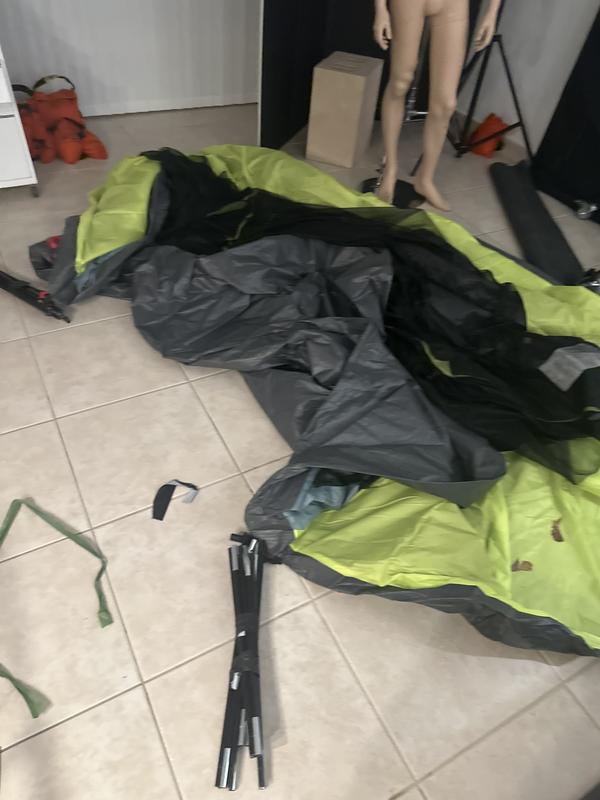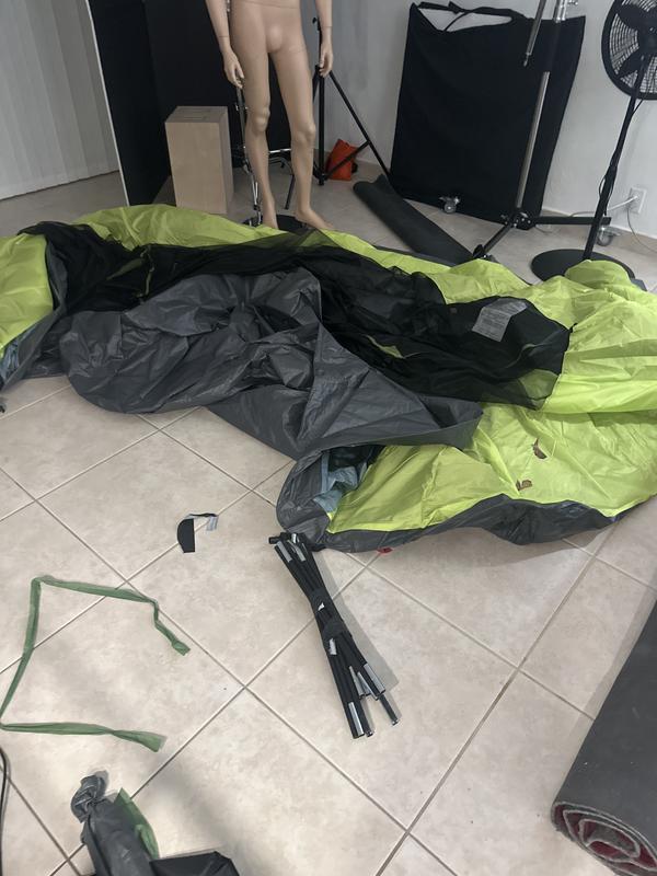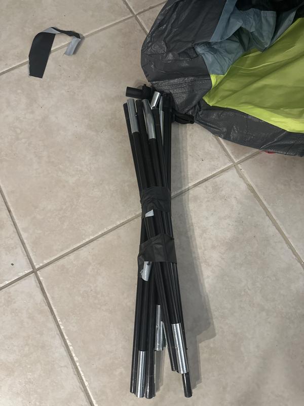 Have used this tent twice so far and both times it was easy to set up and take down, and it was a pleasure sleeping in. My wife and I love the fully enclosed front entry room. When we got home after our second time of using it I started to set the tent up in my backyard to clean it. Unfortunately, the bungee chords within one of the tent poles broke all of a sudden and now I have a pole that is in disconnected pieces and I don’t know what to do. It is very disappointing.