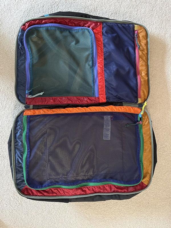This bag was exactly what I needed for 13 days of international travel. It held all I needed (plus room for treasures found along the way) and I never had to worry about lost luggage. I'm a small frame but it never felt heavy or made me off balance. I love all my Cotopaxi gear! I also brought the packable raincoat and the convertible crossbody/backpack for day trips.