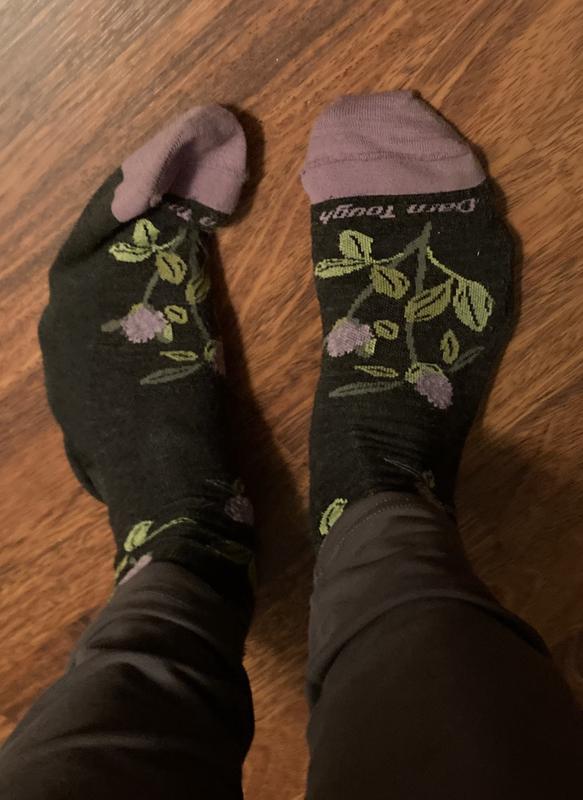 We've worn all wool Darn Tough socks for years and love them. We were curious to try the blend. The pattern is pretty, but the socks in general are a bit of a disappointment. In particular, the stitching across the toes is rough enough to irritate the tops of the toes -- not good for walking! We've tried them once but won't buy again.