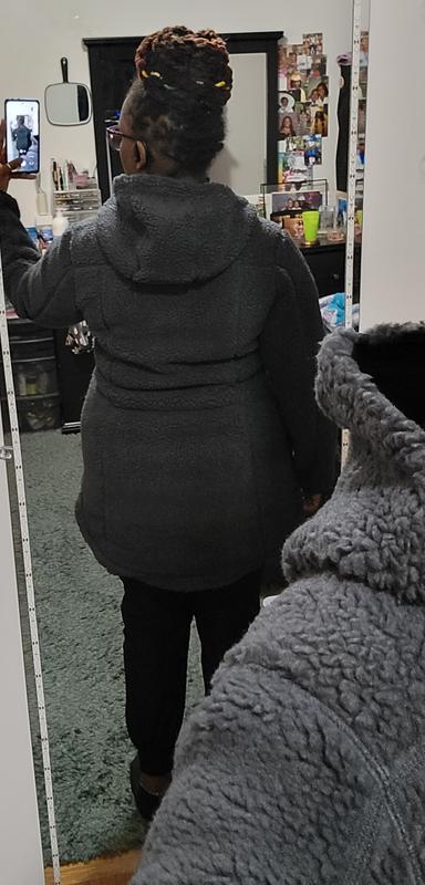 - Plush sherpa fleece coat for cold-weather comfort and everyday wear