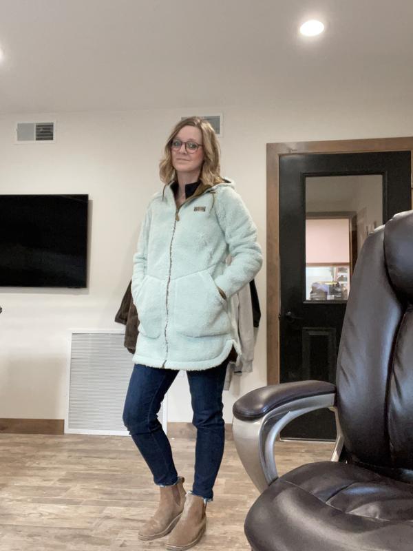 The adjustable hood offers a secure fit when the wind picks up, while the inner backer helps block breezes from slipping through. A two-way front zipper adds versatility whether you’re layering up for a cold-weather stroll or settling in around the campfire. Zippered hand pockets keep essentials close and fingers warm, making this coat as functional as it is cozy for everything from weekend hikes to daily commutes.