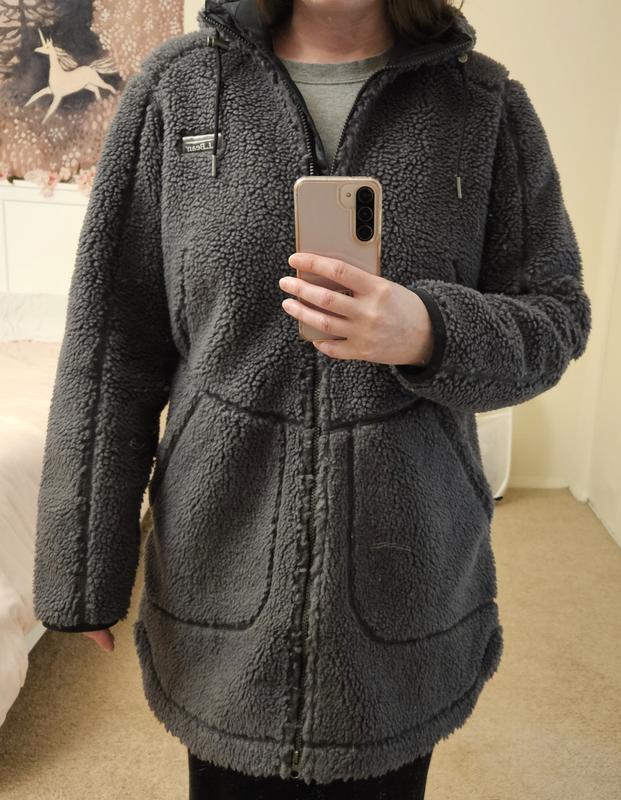 "This is the kind of fleece I grab when I want blanket-level warmth but still need to be mobile. The 300-weight sherpa is thick and cozy, the hood cinches down when the wind picks up, and the two-way zipper is surprisingly useful for driving or sitting outside. It’s become my go-to for chilly morning hikes and coffee runs."