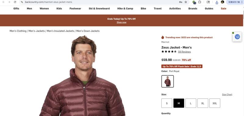 I ordered it. I paid. The jacket never arrived. I asked Backcountry to make a claim with FedEx so I could get my money back. Backcountry refused. Go to Sierra for everything. It's a good company.