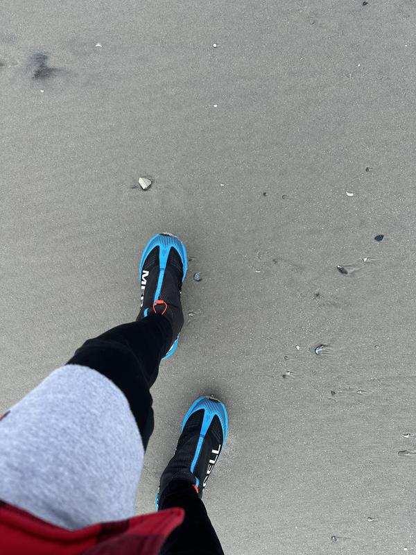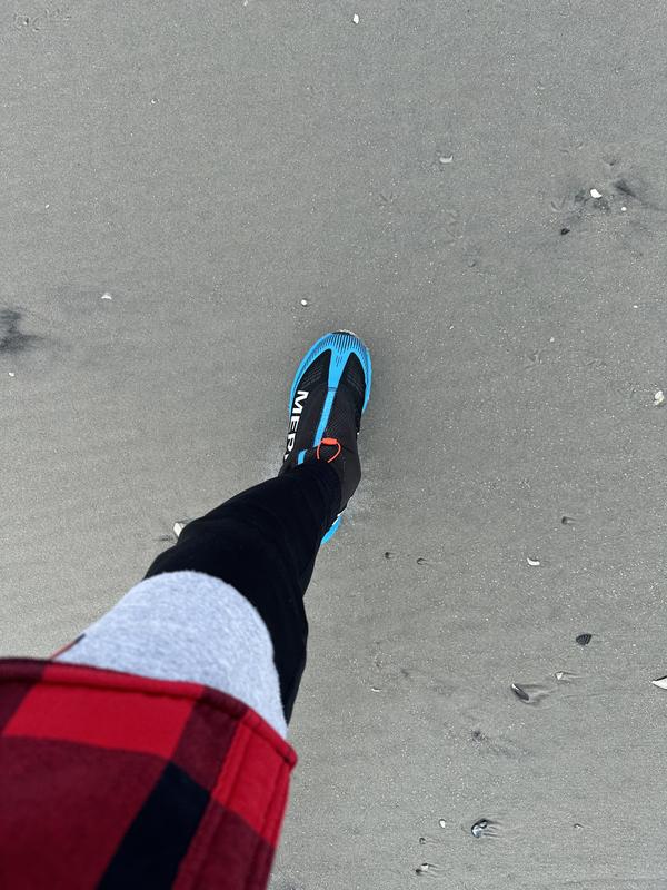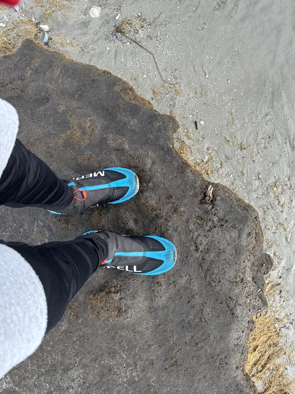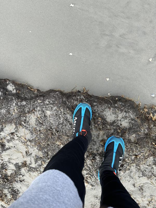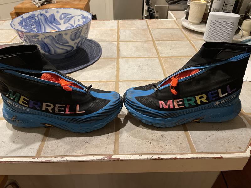 I was worried when ordering that I should have gone up another half size than I normally do with most shoes, I am glad that I didn't and that the normal 10.5 size I order was perfect with these 10.5's . So, I'd take the recommendation from Merrell to size up from your normal size with a grain of salt. I do not like wearing thick socks in any of my shoes, or my climbing boots. That would be the only reason I'd size up is if you like to wear thicker socks. I find them very reminiscent of the Salomon XA Alps that I have, I'd say they are a cross between a Hoka and those Salomon's. The cushioning and the footprint size is similar to what you'd expect with a Hoka running shoe, but the color, gator, and even the inner shoe screams Salomon XA Alp. Just like most of you, I also got these on sale and I think they are a screaming deal for that price. I hope that They continue with these shoes in the future, I know I would buy another pair if they did.