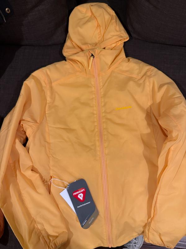 I love this jacket. I've been wearing it for spring dog walking but plan to use for hiking and camping this summer. It is so light and warm and has a good fitting hood for wind and light rain. And the colour is bright and soft, like spring and fresh fruit. Buy one!