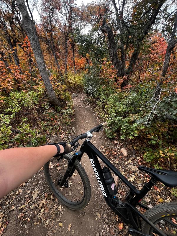 This bike climbs like a mountain goat compared to my enduro bike! Uphill and on flat ground, it's a rocket. Quick steep rocky climbs out of a super slow, tight corner are a breeze to clean. It’s a slight bit twitchy on rough, steep downhills and the front brake is a bit weak compared to a more gravity focused bike, that is to be expected, but the climbing ability more than make up for it! A 140mm Fox Performance Elite fork and Code RSC brake upgrade, now that would be the perfect all-around bike!